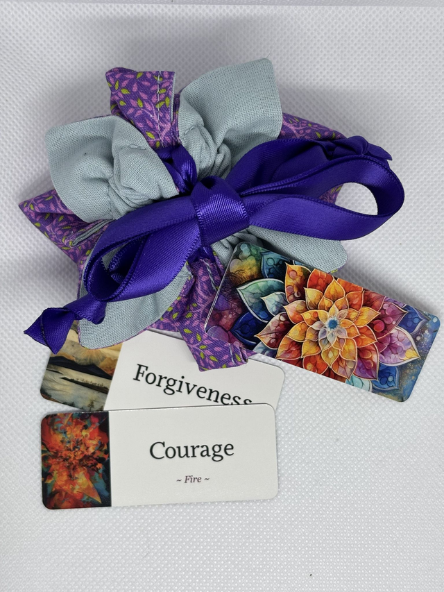 Connect with your inner wisdom for guidance and support through this handcrafted 30-card reflection deck. The simple yet powerful words of inspiration are presented in a handmade cotton bag.