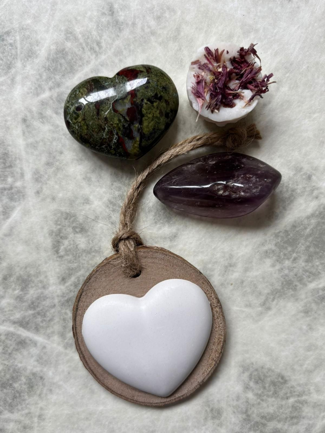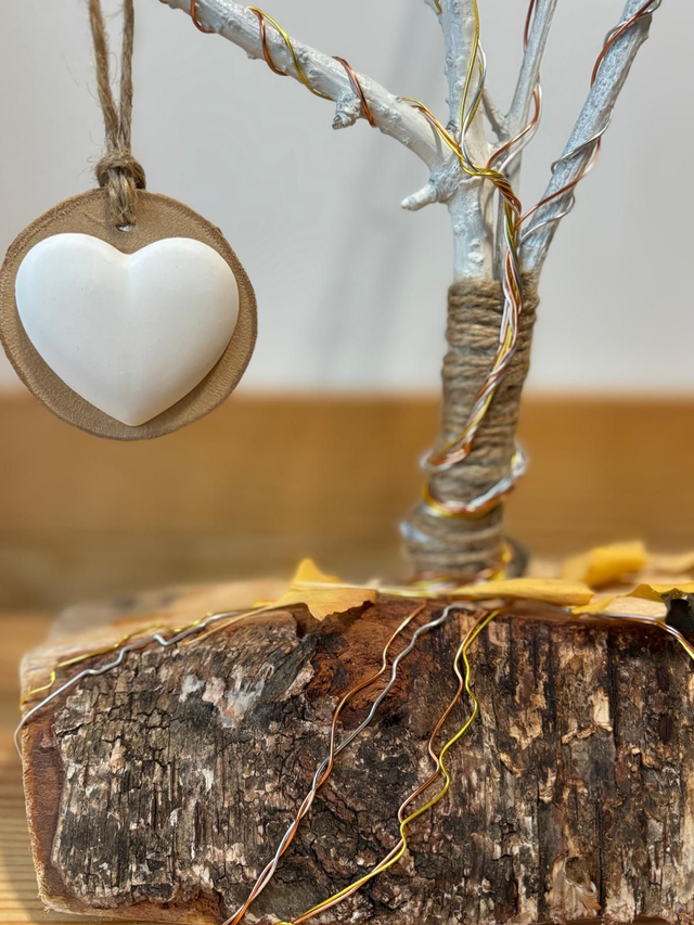 💖Add a touch of natural charm to your home with this hand-poured fine plaster heart ornament, mounted on wood and suspended by a rustic jute string. Each piece is poured and finished by hand, creating a smooth, tactile heart with subtle variations that make every ornament unique. Ideal housewarming gift or thoughtful décor for meditation, relaxation, or self-care spaces